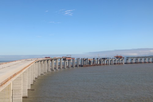 長平高速是國高網(wǎng)京臺高速的延伸線,也是平潭島第二進島通道。長平高速全長21.703公里,起于長樂市古槐鎮(zhèn),終于平潭海壇海峽長樂岸,與在建的平潭海峽公鐵兩用大橋相接。長平CPA3合同段全長2.691公里,其中松下跨海特大橋全長1421.74米,是長平高速重要的控制性工程。